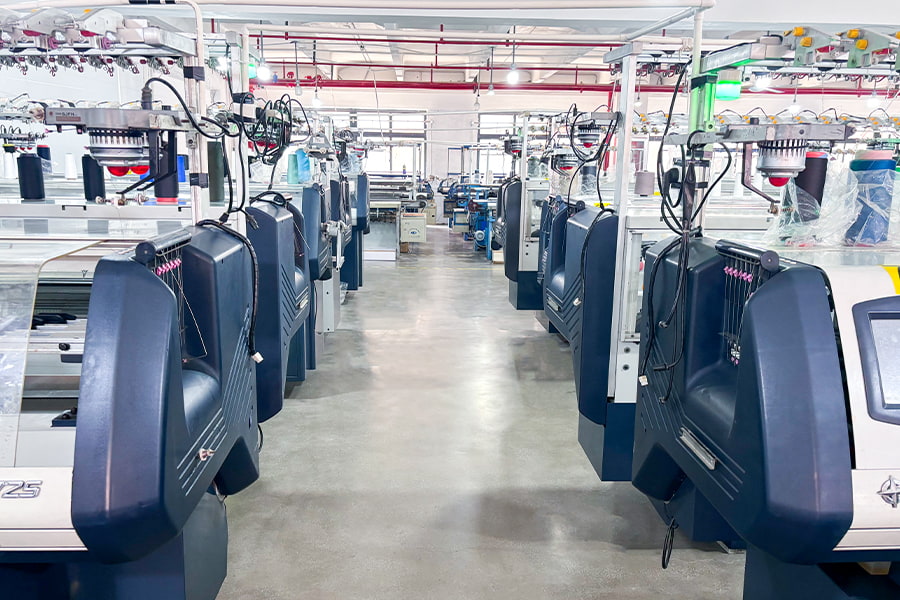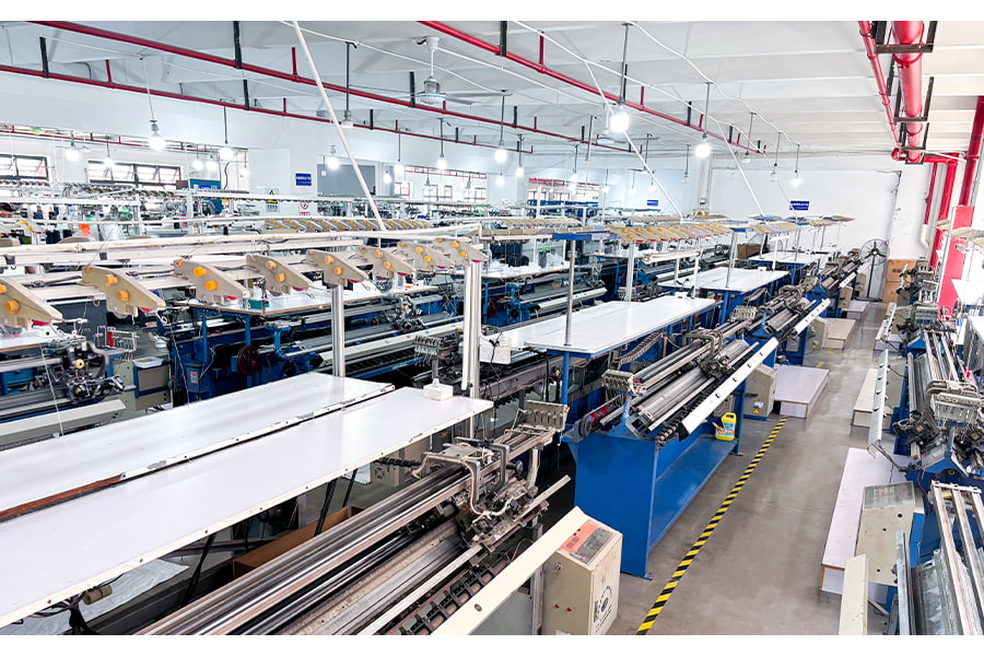 विश्वव्यापी ग्राहकहरूको विविध आवश्यकताहरू पूरा गर्न कुशल उत्पादन र उत्कृष्ट उत्पादन गुणस्तर सुनिश्चित गर्न कम्पनीसँग २०० उन्नत कम्प्युटराइज्ड बुनाई मेसिनहरू छन्।